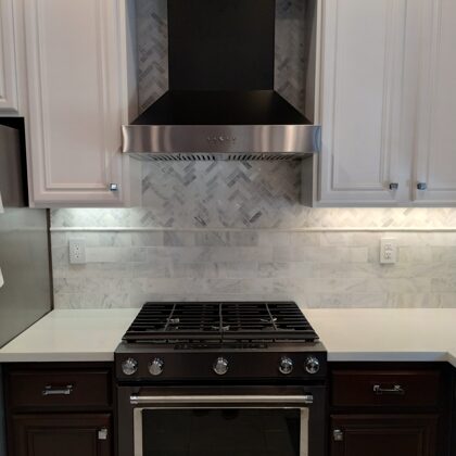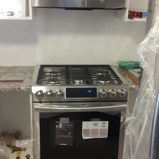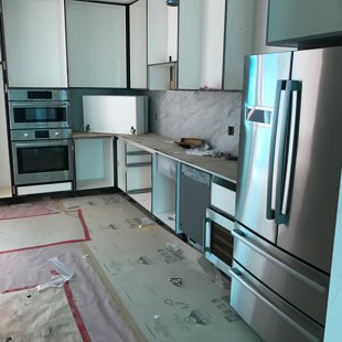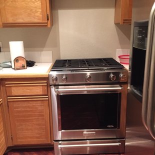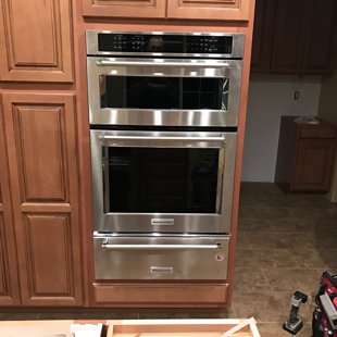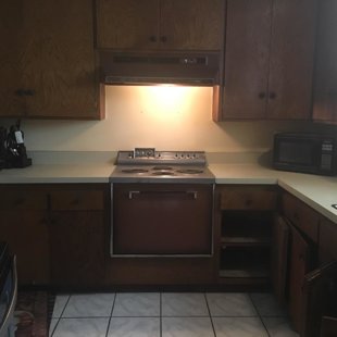 Prior to cabinet convertion from double oven to single oven and built in microwave -