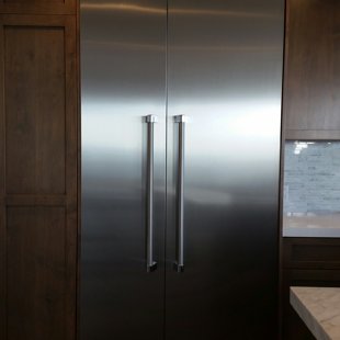 3 column Thermador refrigerator finished with door reversed to open a certain way per cust -