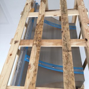 Setting up opening with protective floor cover against scratches and indentation for wood -